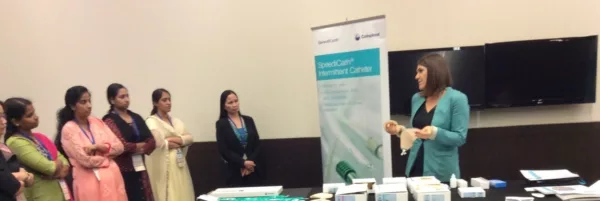 As shown in this photo there was a great interest on how to assess the patient using the Urostomy Education Scale. The introduction to the materials used during the workshop such as catheters and urostomy bags was done by Coloplast and Wellspect HealthCare representatives.