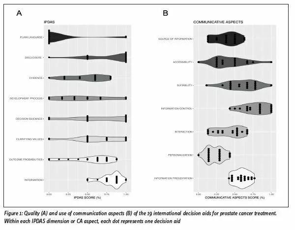 To answer these questions, a group of Dutch (health communication) scholars recently performed a large-scale systematic review to assess the quality and use of communication in currently available decision aids for patients with localised prostate cancer. They systematically searched through academic databases such as EMBASE or MEDLINE to collect decision aids that were, for instance, part of interventions in randomised controlled trials. In addition, they performed a thorough search through Google, since patients are more likely to find their information and decision aids in this environment (5). Eventually, they identified 19 international decision aids, of which 11 originated from North America and eight from Europe. The majority of the aids (12) were web-based tools, and the year of publication ranged from 2007-2018.